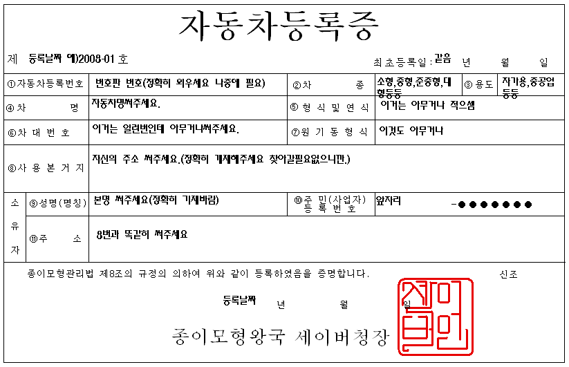 자동차 등록증은 자동차 소유자와 차량의 주요 정보가 기재된 공식 문서로,